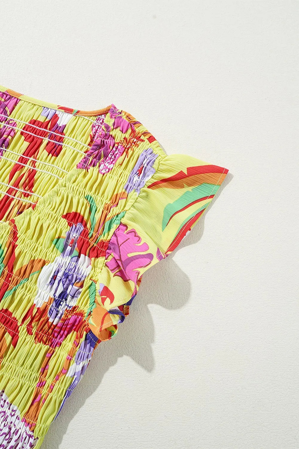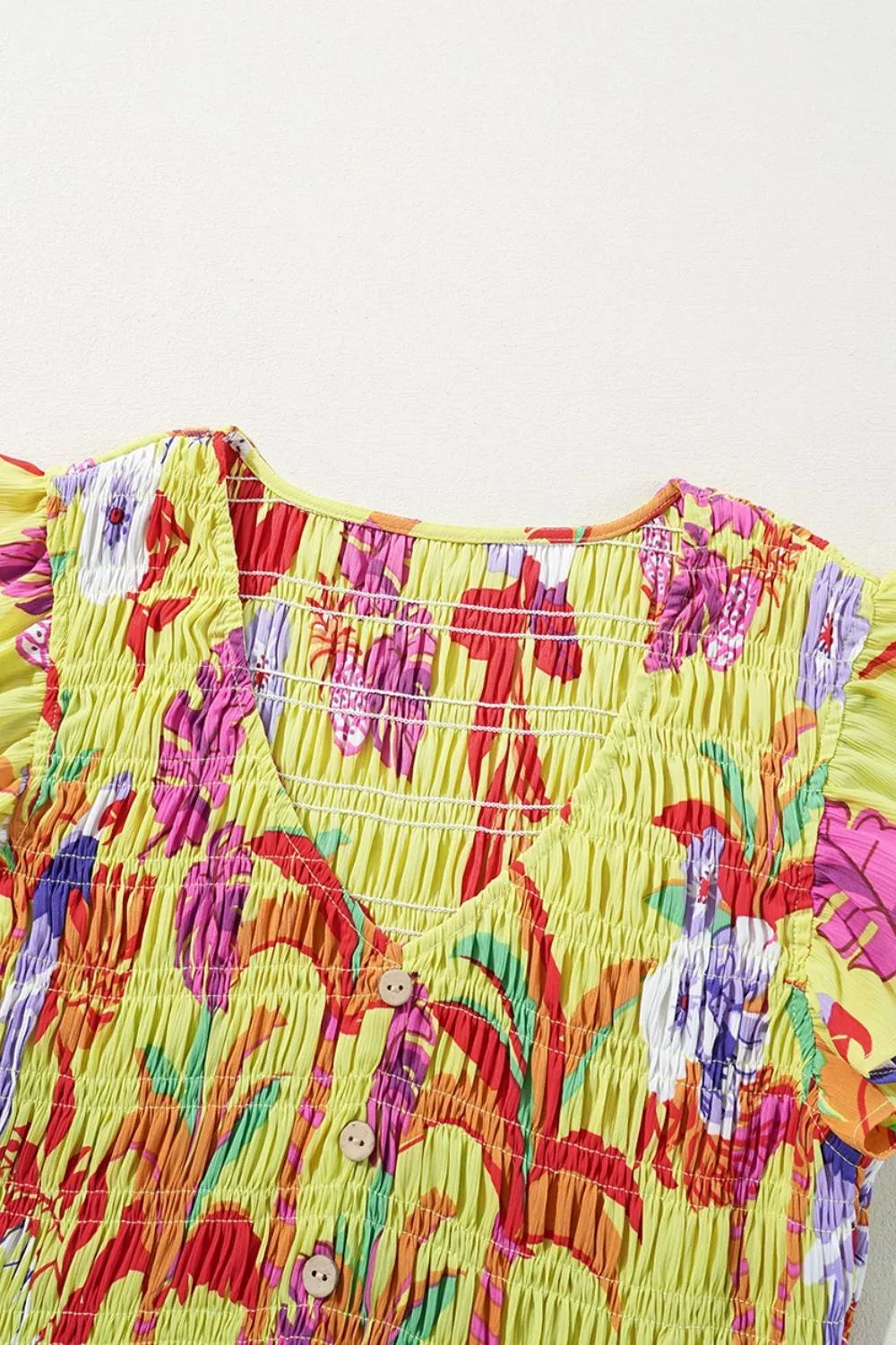 Cheetah Plant Print Shirred Button V Neck Maxi Dress
