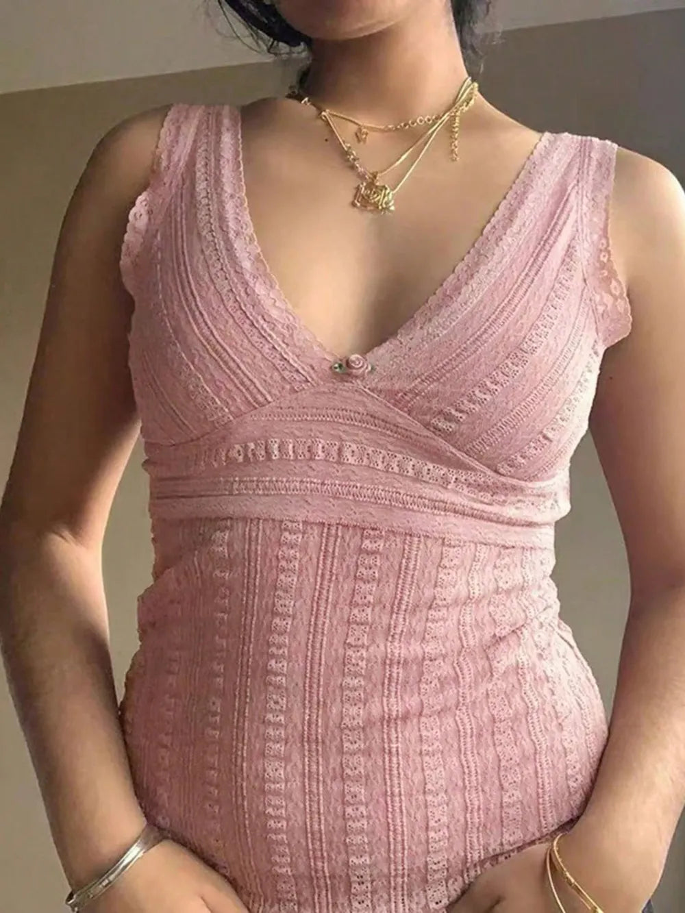 Devine Lace V-Neck Tank – Trendsi | ClozArt
