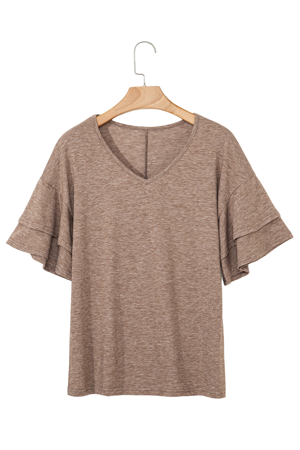 • The double-layer sleeves add a touch of elegance to this classic V-neck design.