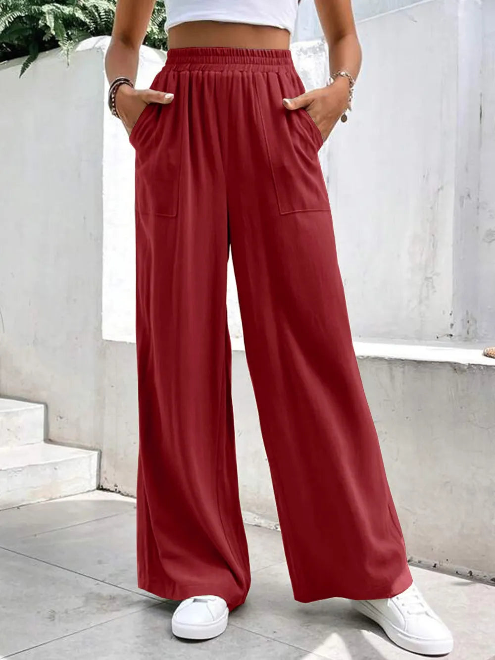 High Waist Wide Leg Pants with Pockets – Trendsi | ClozArt High Waist Wide Leg Pants with Pockets – Trendsi | ClozArt