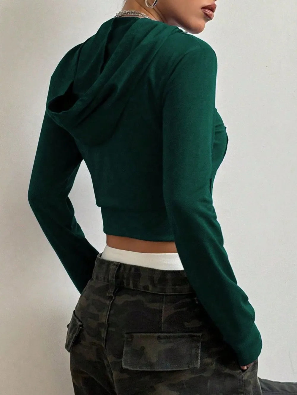 • Letter Graphic Zip Up Long Sleeve Hoodie