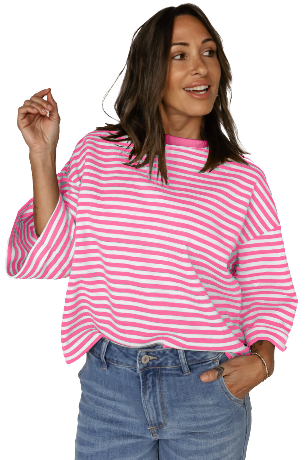 • Bold red stripes add a pop of color and trendy flair to this classic design.