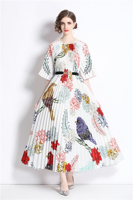 Sexy fashion dress, round neckline,3/4 short sleeves , stretch fabric, pleated style skirt with belt