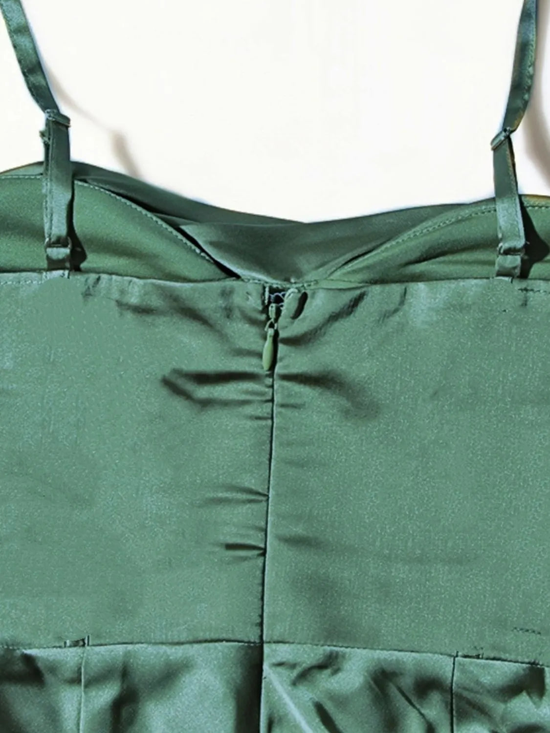 Split Ruched Satin Zip Back Midi Cami Dress – Trendsi | ClozArt