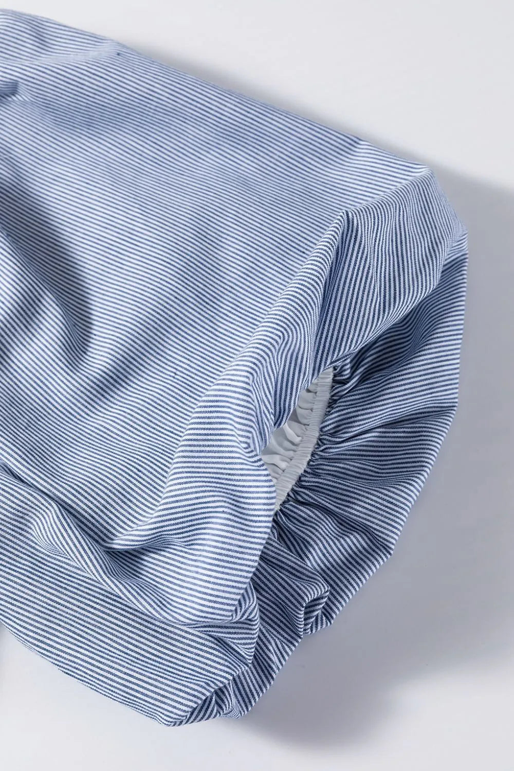 • Striped Bubble Sleeve Ruched Babydoll Dress