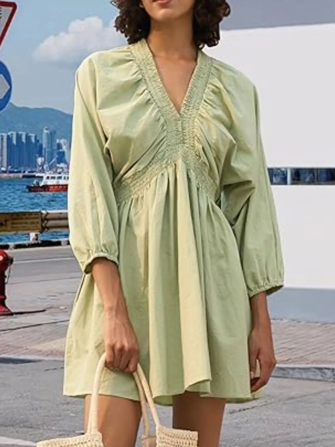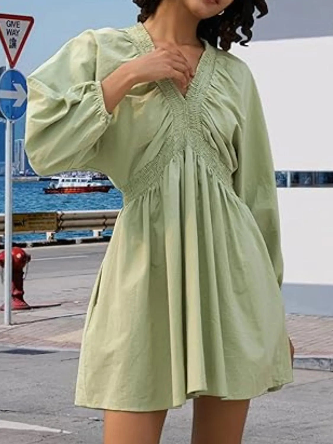 Textured V-Neck Mini Dress – Trendsi | ClozArt
